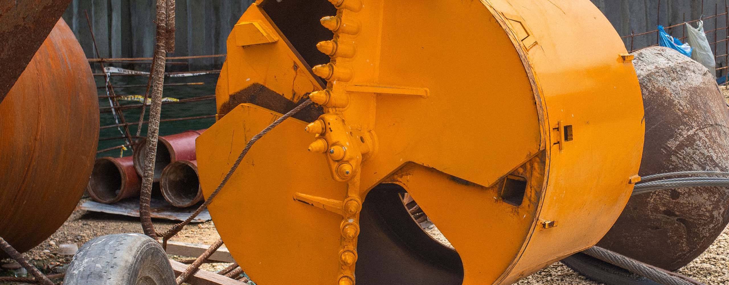 Drilling bucket for rotary rigs, including soil and rock types for foundation construction.